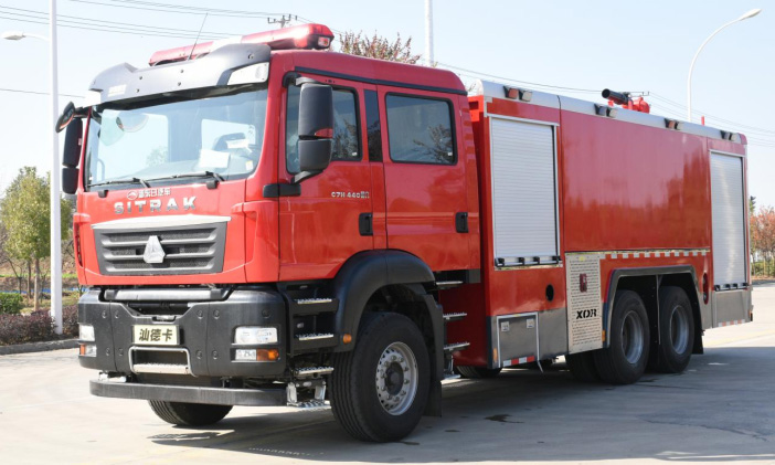 供水车的特点是装有大容量的贮水罐,还配有消防水泵系统,用它作为火场供水的后援车辆,特别适用于干旱缺水地区。它也具有一般水罐消防车的功能。配置消防泵:消防泵采用常压消防泵和选配中低压消防泵。常泵:号:BS30车用消防泵流糧:30L/s,力:1.0MPa ,中低压消防泵型号: CB20. 10/15.30消防泵,低压流量: 30L/s/1.0MPa , 中压流量: 15L/S/2 .OMPa具有压力强劲,供压稳定和机动灵活等特点。消防供水车能满足不同作业环境下的各种工作要求,行径中亦能进行消防扑救。消防器材箱及器材。器材架采高强度铝合金型材,电脑CAD设计,各种器材分隔合理,内部空间宽大,并采用专用固定设备夹,器材安放稳固,收取方便。同型接口x1套,直流水枪(口径6.5CM)x1套,开花水枪x1套,直流开关水枪x1套,羊镐x1把,地面扳手x1把,腰斧x1把,消防板斧x1把,铁锹x1把,撬扛x1把。水罐消防炮:型号: SP30 ,水射程≥55米泵。消防器材常规配置:消防吸水管(口径10CM, 4米长)x2根,滤水器x1件,消防水带(口径6.5CM, 20米长:口径8.5CM, 20米长)x2根,水带挂钩x4件,水带包布x4件,异径接口(口径6.5-8.5CM) x2套。