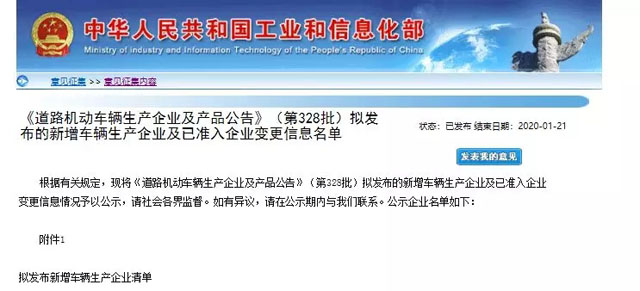 2020年1月15日显浩正式通过了国家工信部新増专用车生产企业准入审查!获得了专用车生产企业的准入资质。其审查结果一并发布于《道路机动车车辆生产企业及产品公告》(328批)上。