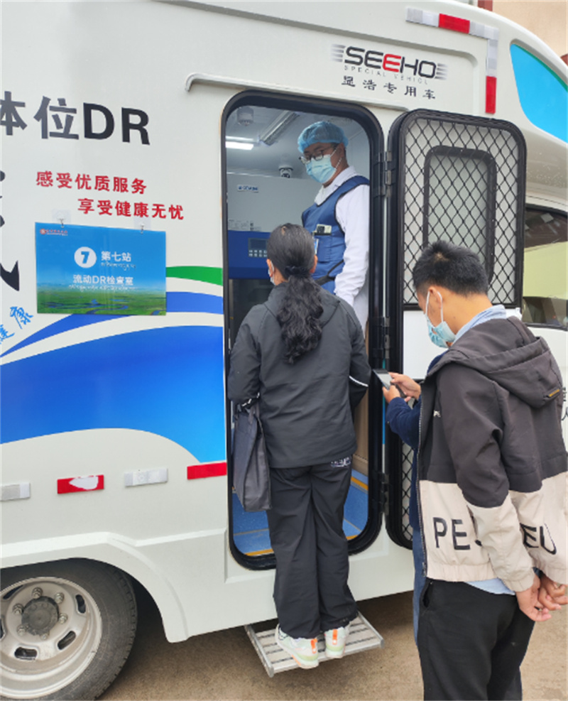 作为现场会其中一个重要环节,显浩DR体检车伫立色达县洛若镇卫生院门诊大楼旁,迎来与会人员集体参观交流。