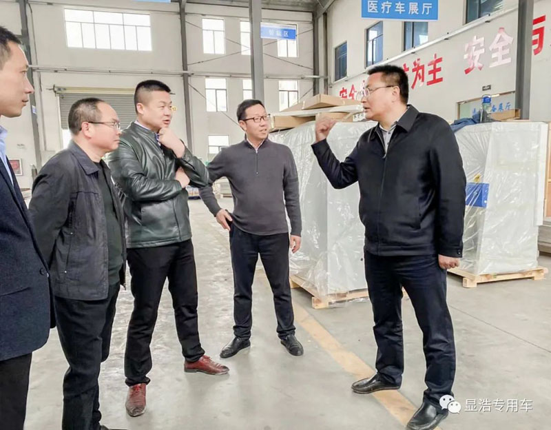 刘涛来到生产车间,详细了解了显浩公司近期生产情况。由于全国疫情多点发生,湖北显浩为了满足各地新冠肺炎抗疫需求,生产部门每天加班加点赶工生产移动核酸检测车、医用方舱隔离病房、移动P2实验室等应急医疗特种车辆。副市长刘涛对公司抢抓生产、支持抗疫的奉献精神和责任担当给予高度评价,并叮嘱公司要切实抓好生产管理,既要保证生产进度,也要确保生产安全。