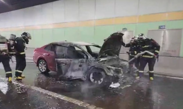 隧道内轿车自燃,情况危急!先导处置车携手消防员逆行救援。天气炎热,风高物燥。空气湿度很低,很容易发生火灾。这时突发紧急情况,隧道的一辆小轿车发生了火情,自燃了。时间紧迫先导处置车第一时间赶到现场进行处置。因为隧道比较狭窄,又是下班的完高峰期。自燃导致了高速车辆大排长龙。消防车比较大开到隧道口就没办法往前开了。为了让消防车尽快到达现场灭火。先导处置车的人员在指挥交通秩序。搭载消防队员进隧道灭火。很快现场明火被扑灭,自燃车辆被拖离。经多先导处置车部门联动处置,快速消除车辆燃爆险情,交通恢复正常。