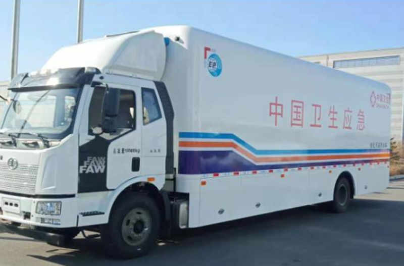 显浩核化污染洗消车应运而生,该款车具有多系统高度集成、全天候机动响应、水电自我保障等突出优点。该车辆满载87吨,扩展后的工作空间长达15米,宽7米,高5米,能有效防止交叉污染,最大程度地保障伤病员和救援人员的生命健康安全。传统国内外洗消作业以公众洗消帐篷为主,存在自身防污去污难、功能单一、智能化水平不高等问题。显浩研制的多功能核化污染洗消车,提供了突击处置、智能洗消等功能为一体的化学事故洗消处置技术装备保障,可第一时间快速进入污染区,完成应急处置和人员救助。