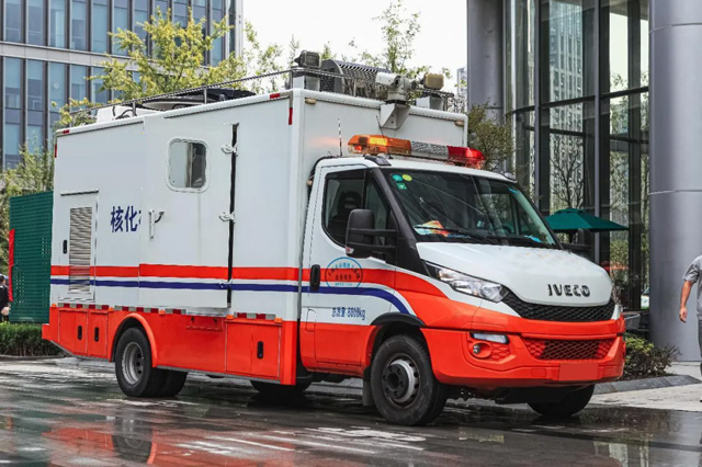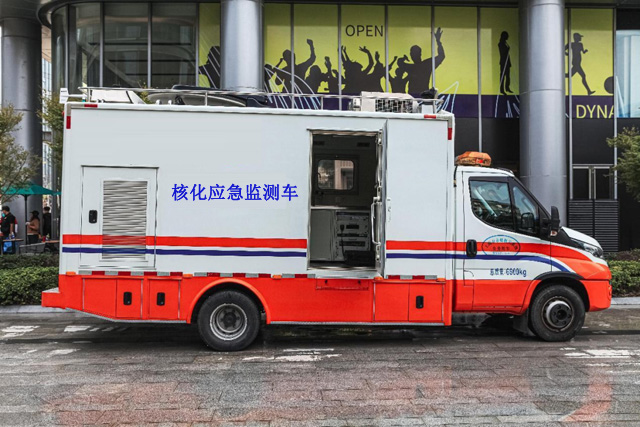 保障车很多种,我们认识的有救护车,军警车,消防车等跟我们生活相关的应急车辆。民防车也跟我们安全息息相关,也就是核化应急监测车。核化应急监测车的整车造型非常方正。颜色采用醒目的上面白色下面橙色。中间有灰色的线条来涂装。外形看是很霸气结实的。国内比较常见的方式警示灯大多是采用左黄右红的布置。它是用了长轴距的底盘。搭载了3.0发动机和8AT的变速箱。最大的负载重量是7吨。总质量是6.6吨。算上物资和人员可以满足7吨的标准。所以这个底盘车型可以用来改装通信车,救护车,工程车等比较友好。