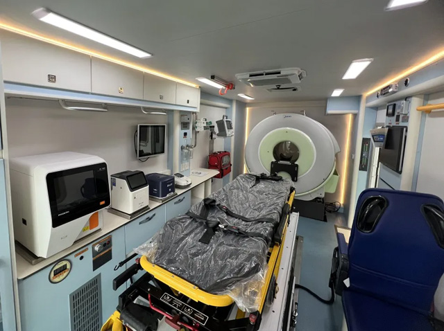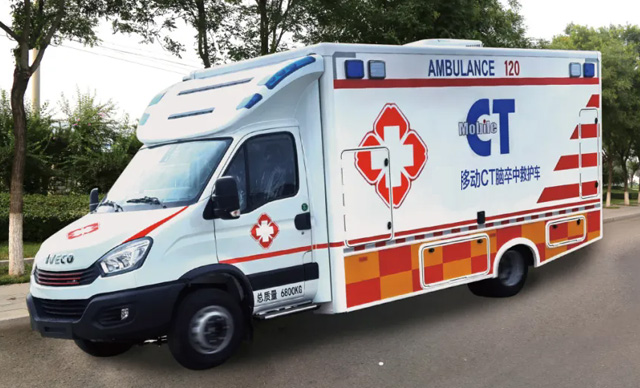 脑卒中70%-80%的脑卒中(脑梗死)由脑血管堵塞引起,导致该血管供应脑组织缺血、缺氧坏死或脑软化。已成为全世界健康的头号杀手,是无数家庭的泪水与无助,是对社会医疗资源的巨大挑战。脑卒中急性脑血管疾病,分为缺血性卒中和出血性卒中。 救护车的正确的急救对于减少卒中致残致死的发生至关重要。脑卒中CT救护车每一分每一秒都承载着希望与挑战。配置先进的CT设备,随时了解患者体征、检查数据及车内实况,提供即时医疗咨询与紧急处理方案,患者第一时间上救护车就可以得到基础的检查,确保有病情的评估与初步的治疗。上车即入院,连接医院的急救中心,缩短救治时间。争取在黄金救援时间内挽救生命。