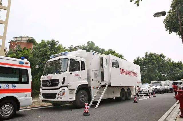 核化污染洗消车整套装备为便携式,现场进行安装和拆卸。洗消前后,伤员都需要走过一个自动检测门,进行体表剂量检测。附带检测车功能,功能齐全,自动化程度高。因此核辐射的场所、人员评估、处置能力强大,此次正是依托国家化学中毒和核辐射医疗救治基地建设。