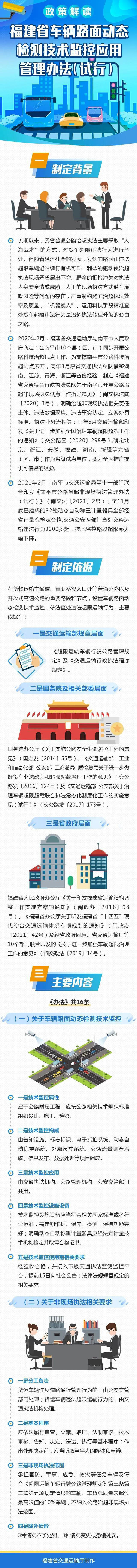 为加强道路货物运输车辆超限超载治理,规范道路运输非现场执法工作监测车动态检测,车辆路面动态检测技术监控由告知设施、标志标识、电子抓拍系统、动态自动称重系统、外廓尺寸系统、交通流量调查系统、信息发布、数据处理等项目组成。车辆路面动态检测技术监控的电子抓拍系统由公安交管部门接入应用,用于查处货运车辆通过检测区域不按规定车道行驶等涉嫌违反道路交通安全规定的行为;动态自动称重及外廓尺寸系统由交通执法机构接入应用,用于非现场查处货运车辆通过检测区域违反超限运输管理等违法行为;交通流量调查系统由公路管理机构接入应用。如何查处《办法》要求,车辆路面动态检测技术监控使用前应提前15日向社会公告,运用车辆路面动态检测技术监控非现场查处货运车辆超限运输违法行为应依法履行审查、立案、取证、法制审核、技术审核、告知、决定、送达、执行等基本程序。