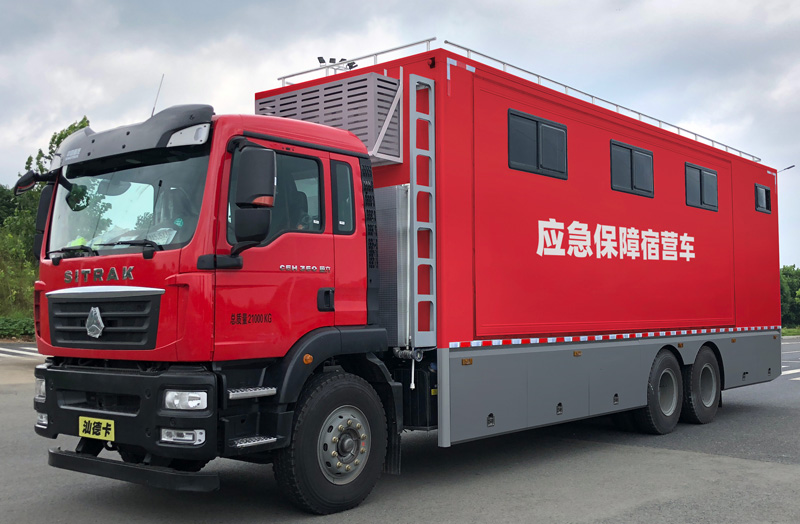 后勤保障车淋浴车系列选择重汽汕德卡底盘,搭载强悍发动机,动力强、机动性好、通过能力高,出勤响应快等种种优点。它的驾驶室上面车厢两侧、尾部都可以安装爆闪灯。由驾驶室的警报器材扩音系统来控制。配置了超大容量的水箱,保障淋浴用水的要求。污水可以集中收纳。车载的发电机主可以自主发电。也可以外接电源输入。淋浴能力可以几人同时使用。水温可以调节30几到60度之间,配备了不锈钢花洒。顶部还有排气扇。可以保障淋浴室的空气流通。还有独立卫生间,大镜子洗手台,更衣柜、更衣凳、暖风机冷暖空调等。设计合理配置高。后勤保障车提供了生活保障条件。让执行任务的人员有很好的洗澡条件。