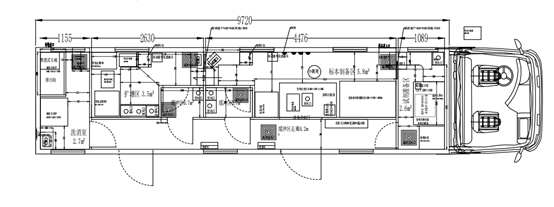 移动核酸检测车按功能可分为试剂准备区、样本制备区、扩展分析区、消杀区和设备间。