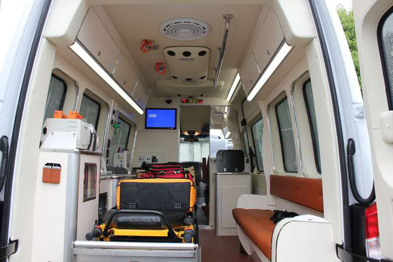 救护车整车基本要求,主要功能为转运、救治和监护病人的专用救护车,满足操,基本要求,控性能好、动力强等要求,适合急救的需要。能在当地公告交通管理部门办理救护车登记注册手续。适应各种自然户外作业适,适应气温零下30摄氏度到60摄氏度之间,相对湿度需要小于等于80%。防火性能、 采用集成电路控制系统,触摸屏操作,可显示日期,时间,温度,湿度,时时监控电池电压,交流电压,消毒灯开关及消毒时间的自动控制,排风及进风控制,吸引器的控制,逆变器控制,照明灯控制。电控保护系统,设有电器过载保护以确保医疗救护设备跟电器的使用。救护车配置4个摄像头,实时监控车外、驾驶室、医疗车和车尾4G车载监控系状况。实现驾驶室和医疗舱通话并记录回传院方控制室。GPS实时定位监控车辆行驶路线和道路状况。特殊情况下,可遥控指挥或指导医生进行病人急救。