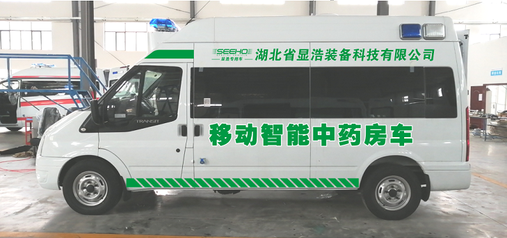 显浩公司可以改装各种用途的特种专用车,移动中药房车就是其中一款热门改装车型。福特V348底盘为基础的XHA5040XYL07型医疗车智能移动中药房车集成了自动发药系统、应急供电系统、应急广播系统等,能够执行移动医疗、防控宣导等任务。具有独立工作,高效,空间小等众多优点。