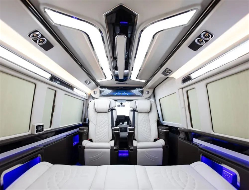改装商务车三连排的沙发床也可以180度的平躺,方便日常出行困了累了能够及时的休息。顶部豪华定制顶灯,造型美丽,色彩鲜明,多款颜色切换,点点星星的顶部衬托着整车,氛围感也得安排上。